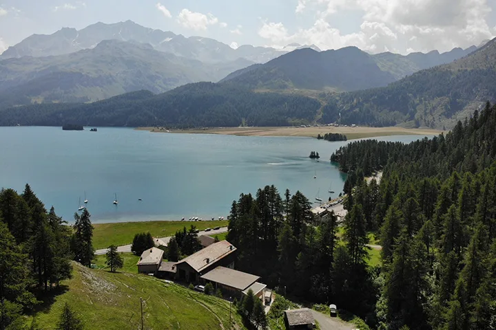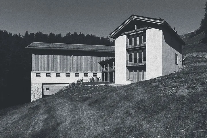 Zwischen Sils und Maloja, am steil abfallenden Ufer des Silsersees, liegt der in den Jahren 1985 bis 1986 von Renato Maurizio neu gebaute Bauernhof in Plaun da Lej. Die markante Topografie mit nahezu senkrechter Felswand wurde funktional wie räumlich konsequent in die Gestaltung einbezogen. Durch die Querstellung des Stalls über dem Abbruch konnten Tenne, Viehstall und Miststock in einer vertikalen Abfolge übereinander organisiert werden – analog zur innerbetrieblichen Logistik des Futterwegs. Horizontal folgt der Zwischenbau dem Verlauf des Hangs und leitet über zum Wohnhaus, das optimal zur Sonne und mit weitem Blick über den See ausgerichtet ist. Die klare Gliederung in drei Baukörper – Ökonomie, Verbindungszone, Wohnen – verleiht dem Ensemble eine hohe räumliche Lesbarkeit und verankert es zugleich selbstverständlich in der Landschaft.