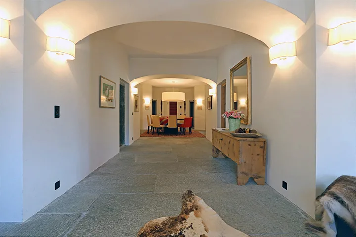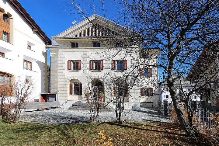 Das Patrizierhaus aus dem Jahre 1836 im Zentrum von Celerina wurde 1996 originalgetreu renoviert und teilt sich nun in 3 separate Wohnungen auf. Im Rahmen der Renovation wurde die Treppe in den Nord-Ost-Teil verlegt, wodurch alle Wohnungen nun durch die Abendsonne schön lichtdurchflutet werden. Zudem liess sich ein Lift einbauen, um das Haus rollstuhlgängig zu machen. Der Keller ist trockengelegt und fungiert nun mit seinem historischen Steinboden und den Gewölben als imposanter Eingang. Beim Dachgeschoss, das früher als Wohnraum für die Bediensteten diente, sind die Fenster vergrössert und Dachfenster eingebaut, wodurch eine zusätzliche, vollwertige Wohnung entstand. Bei allen drei Wohnungen ordnen sich die Zimmer geschickt an den Seiten verteilt ein, wodurch in der Mitte jeweils ein polygonaler Raum mit besonderem Charme entstand. In den beiden unteren Wohnungen verbindet sich der historische Steinboden sowie das Holztäfer in den Zimmern geschickt mit den sehr modernen Materialien.