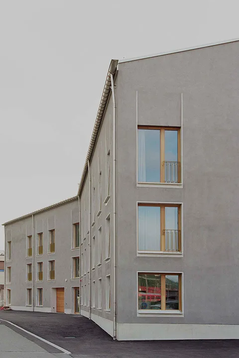 Das Pflegezentrum Promulins wurde im Jahr 1979 erstellt und 1992 erweitert. Die Anforderungen an ein zeitgemässes Pflegeheim haben sich seither stark verändert. Dank der Unterstützung von Spitex können die älteren Personen länger zuhause oder in einer Alterswohnung leben. Der Eintritt ins Pflegeheim wird meistens erst dann erwogen, wenn die Pflegebedürftigkeit diesen Schritt unumgänglich macht. Das bestehende Pflegezentrum Promulins soll zu einem modernen Dienstleistungszentrum für das Alter erweitert werden. Der Entwurf ersetzt den ursprünglichen Bau aus dem Jahr 1979 durch einen Neubau, während das verbleibende Gebäude aufgestockt und umgebaut wird. Die beiden Häuser umfassen einen ansprechend gestalteten, zum Bahnhof orientierten Vorplatz, der der Institution eine prägnante Adresse mit hoher Sichtbarkeit verleiht. Der Neubau wird in Massivbauweise als verputztes Zweischalenmauerwerk realisiert, während die Aufstockung in vorfabrizierten Holzmodulen erfolgt. Diese Vorgehensweise minimiert die Bauzeit und gewährleistet, dass der Pflegebetrieb während der gesamten Bauphase ungestört fortgeführt werden kann.