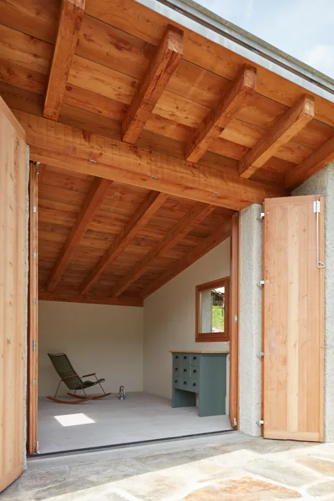 Mitten im Herzen eines traditionellen Gartens in Soglio steht das kleine Gebäude, das sich harmonisch in die gewachsene Dorfstruktur einfügt. 2024 neu errichtet, wurde bei der Gestaltung der Aussenfassade besonderer Wert auf Materialwahl und Wirkung im Ortsbild gelegt. So stammen die verwendeten Rohstoffe aus der unmittelbaren Umgebung – etwa der Sand aus dem Fluss Maira –, dessen Farbton und Körnung die Struktur und das Erscheinungsbild der historischen Nachbarbauten subtil aufgreifen. Entstanden ist ein Gartenhaus, das Moderne und Kontextbewusstsein auf unaufdringliche Weise miteinander verbindet. Standort Gartenhaus bitte siehe PDF