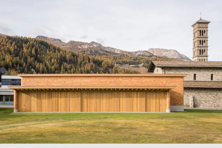 Der Pavillon des Höhentrainings- und Wettkampfzentrums (HTWZ) ist auch Teil der zwei SPECIALS «Architektur-Spaziergang St.Moritz» – Teilnahme nur auf Reservation möglich.