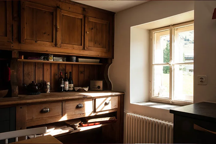 Das Chesa Klucker ist ein historisches Bauernhaus aus Stein und Holz. Es wurde im 16. Jahrhundert erbaut und erhielt im 19. Jahrhundert seine endgültige Form mit einem neuen Besitzer: Christian Klucker. Als erfahrener Schreiner und berühmter Bergführer verlieh er dem Haus seinen Namen und brachte sein Talent für Möbel und Isolierung ein. Seit 1930 ist das die Chesa Klucker im Besitz der Familie Cramer und wurde im Jahre 2023 umfassend renoviert. Die Herausforderung bestand darin, die Authentizität und den Charme der Vergangenheit zu bewahren… und gleichzeitig diskret den Komfort und Luxus von heute einzuführen. Die Synthese zwischen Alt und Neu ist hervorragend gelungen. Die Chesa Klucker ist ein Beispiel für ein Engadinerhaus, geschmückt mit den berühmten Sgraffiti, diesen sehr speziellen architektonischen Verzierungen, die Türen, Fenster und Fassaden umrahmen. Die Wände der Wohnräume sind mit Arvenholz verkleidet. Dieses Holz mit seinen Honigfarben und dem einzigartigen Duft schafft eine weiche und warme Atmosphäre, die zur Ruhe und Besinnung einlädt. Früher heizte ein «Stubenofen» (Holzofen) diese Räume und eine Reihe von Öffnungen leiteten die warme Luft in die Schlafzimmer. Heute funktioniert der «Stubenofen» immer noch als Zusatzheizung, aber ein hochmoderner Pelletkessel verteilt die Wärme im ganzen Haus. In der Küche wurde der Holzofen aus dem 17. Jahrhundert erhalten. Und der Vorratsraum – ebenfalls aus Arvenholz – von Christian Klucker wurde durch die Integration zeitgemässer Module angepasst.
