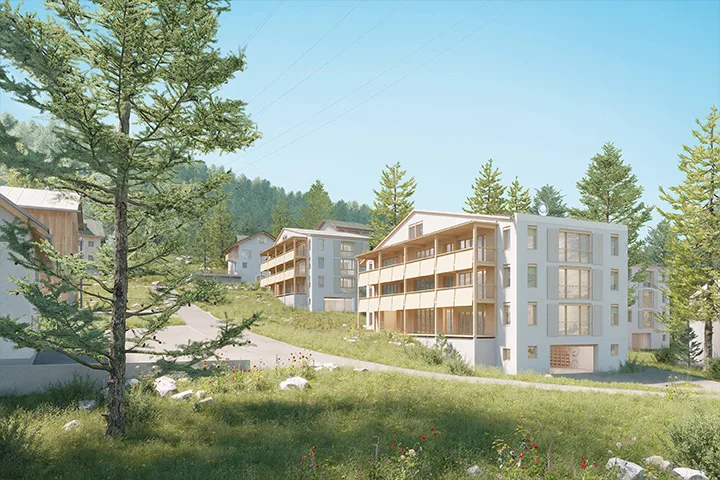 An ruhiger, sonniger Lage am Waldrand südlich des Bahnhofs Pontresina, am Eingang zur Val Roseg, entstehen drei Mehrfamilienhäuser mit 19 Eigentumswohnungen für Einheimische. Das Projekt umfasst moderne 2-½- bis 6-½-Zimmerwohnungen, die alle über eine grosse, nach Süden ausgerichtete Loggia verfügen.