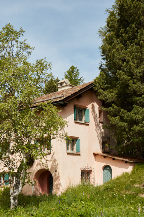 Das Haus auf Crastatscha, einem wunderbar sonnigen Punkt des Fextals, wurde 1925 vom mittleren der drei Bündner Architekten Nicolaus Hartmann Jun. entworfen und erbaut. Die Bauherrschaft hatten Ernst Rinderspacher, Glasmaler, und seine Frau geb. Schulthess inne.Stilistisch enthält der Bau innen und aussen viele, oft weiterentwickelte Engadiner Bauelemente wie die in die Hauswand eingelassenen Fenster oder der Sulerbogen beim Eingang. Das Haus ist nur aus festen Steinplatten und Mörtel gebaut – einer äusserst stabilen Bauweise. Das Dach ist mit den allerseits bekannten, in der Sonne glänzenden Schieferplatten belegt. Die Aussenwände sind verputzt und rosafarbig gestrichen. Im Innern: Essstube und Wohnzimmer im Parterre sind im Bündner Stil mit Arvenholz ausgekleidet und duften auch heute noch. Der später eingebaute, äusserst stabile Holzofen, auch aus Fexer Steinplatten, ergänzt die still-behagliche Wohnlichkeit dieser Räume. Auf geschweiften Holzstiegen erreichen wir die beiden Stöcke der Schlafzimmer, wobei das sog. Balkonzimmer mit hohem Charme an Licht und Ausblick speziell zu erwähnen ist. Auch diese Räume besitzen Holzöfen zur Beheizung. Das kleeblattförmige Fenster des Dachgeschosses schaut in Richtung Maloja und begrüsst den Talbesucher als erstes. Weitere Hartmann-Objekte in Sils sind das Hotel Alpenrose in Sils-Maria und das Hotel Margna in Sils-Baselgia. Die Einrichtung des Hauses entspricht noch weitgehend dem Originalzustand.
