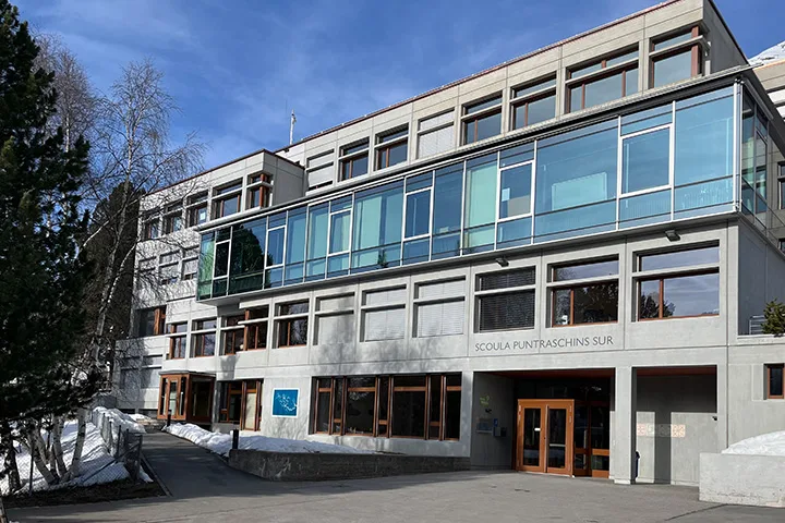 Das Schulhaus Sur in Pontresina ist das Ergebnis eines Architekturwettbewerbs, der vom Churer Architekten Andres Liesch gewonnen wurde. Der Bau wurde 1980 durch eine Turnhalle und 1992 durch weitere Schulräume noch von Liesch selbst erweitert. Trotz der schwierig bebaubaren, trapezförmigen Parzelle entwirft Liesch trotz seiner Grösse einen erstaunlich differenzieren und eleganten Baukörper. So wird beispielsweise das Dach der Turnhalle zum Pausen- und Sportplatz und die Turnhalle ist ebenerdig betretbar und besitzt Tageslicht. Liesch baute im ganzen Kanton Graubünden 37 Schulhäuser. Das Büro wusste, wie solche Bauten effizient organisiert sein mussten und gut funktionierten. Liesch brachte mit dem modernen Bau eine damals offene und fortschrittliche Architektur nach Pontresina.