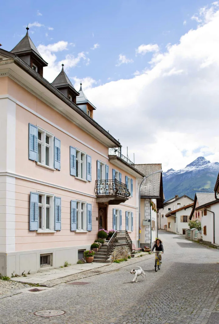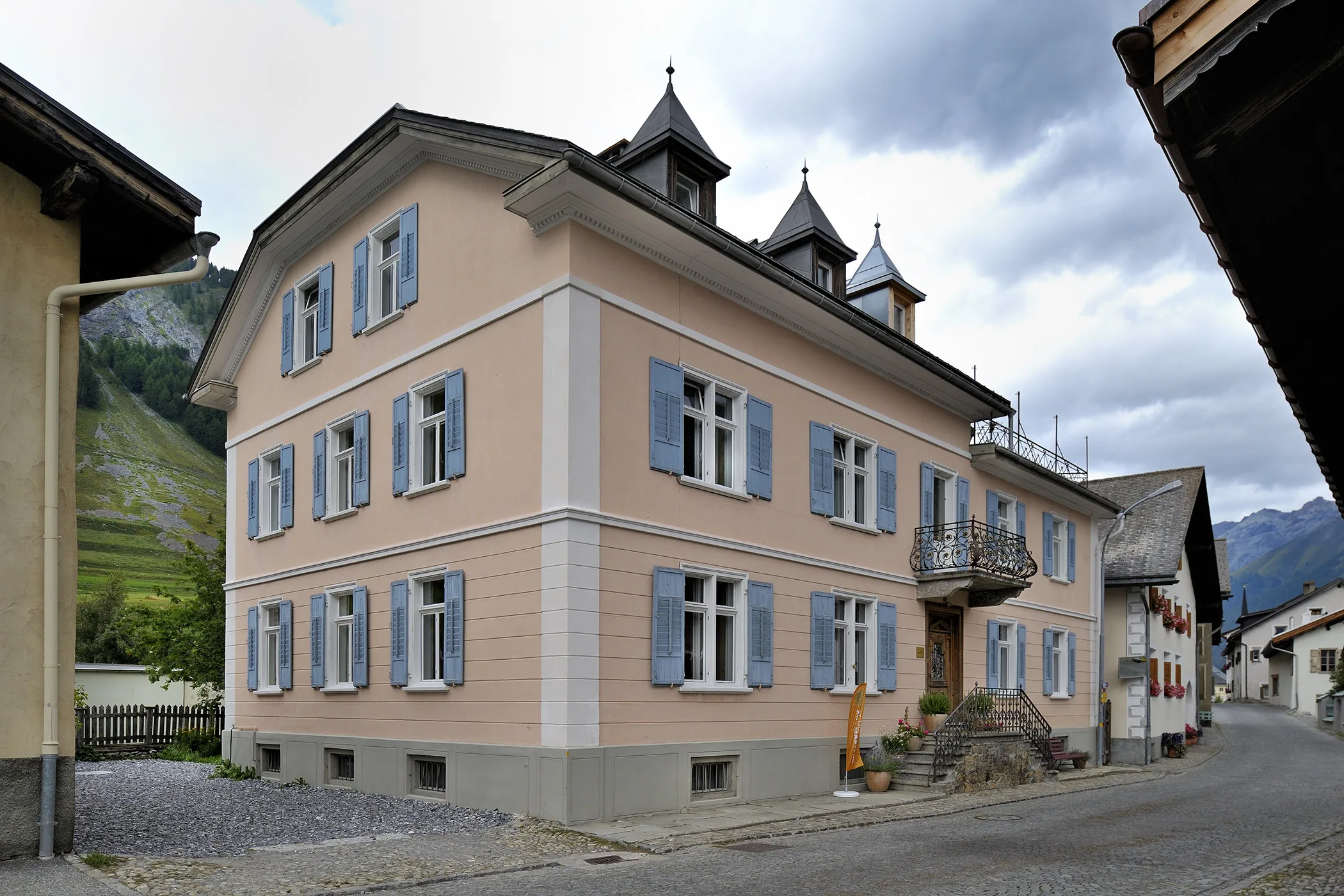 Im kleinen Engadinerdorf S-chanf sticht die Villa Flor deutlich heraus. Sie ist kein regionaltypisches Bauernhaus, sondern ein repräsentatives, herrschaftliches Haus einer zurückgekehrten Auswandererfamilie im Stil des Neoklassizismus mit Jugendstildekor. 1904 errichteten Mitglieder der Familie Cloetta, die als «Randolinas Engiadinaisas» ihr Glück in Parma gemacht hatten und wohlhabend zurückgekehrt waren, den Bau, wie er heute noch besteht. Renovation eines klassizistischen Patrizierhauses: 2009 wurde das Herrschaftshaus zur Villa Flor mit sieben Gästezimmern umgebaut. Dabei wurde Wert auf den Erhalt der historischen Substanz gelegt. Gleichzeitig wurden mit zeitgenössischer Architektur und kunstvoller Einrichtung starke Akzente gesetzt. Die original erhaltenen Jugendstilmalereien wurden fachmännisch restauriert und verleihen der Villa Flor eine eindrucksvolle Ausstrahlung.