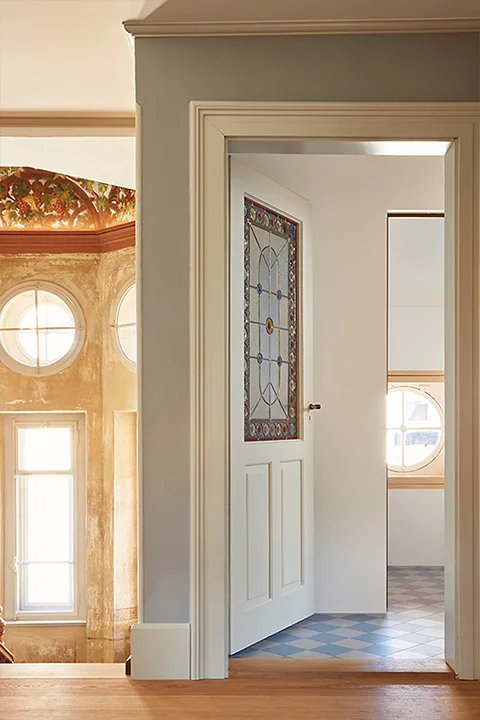 Umso mehr war es Studio C daran gelegen, das Erhalten mit dem Erneuern in Einklang zu bringen und dem Bestehenden mit modernen Ergänzungen zu neuer Kraft zu verhelfen. Entstanden ist eine Symbiose aus Tradition und innovativem Design, die der historischen Villa frische Vitalität verleiht.