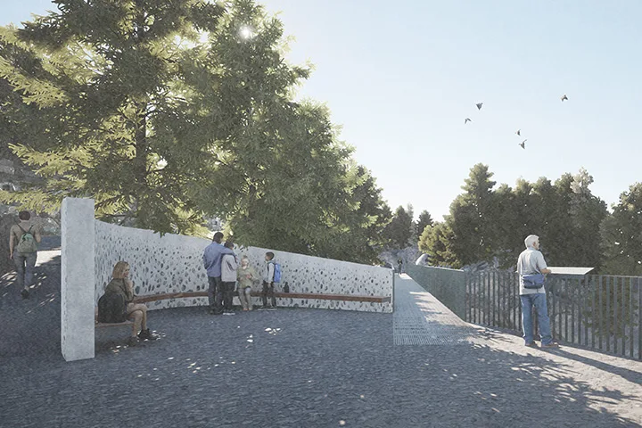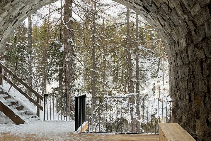 Erläuterungen vom Ideenwettbewerb zur Umsetzung des Siegerprojekts Inszenierung Wildwasserschlucht Ova da Bernina, Führung mit Einbezug Scena da glatsch (unterhalb der Via da Mulin).
